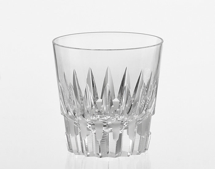 The design of this glass is inspired by a Japanese architectural style called "Ancient Parallel-Cross." Finished with frost glass form of additional cutting after bold cutting and polishing. Simple but timeless glass. Also good for Japanese sake.