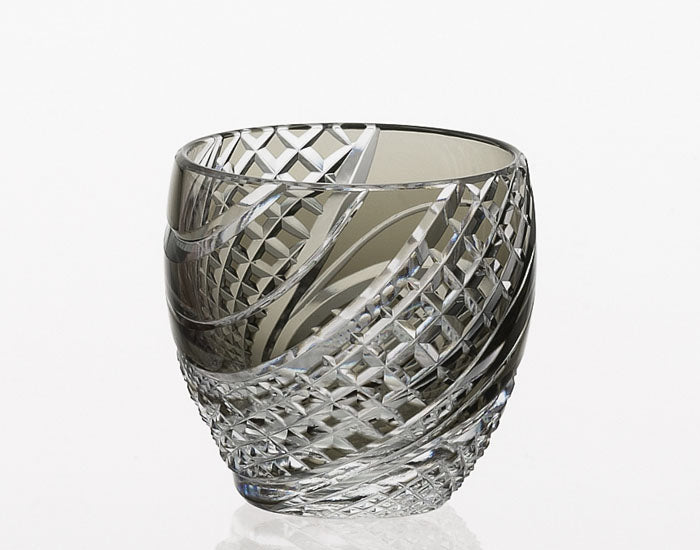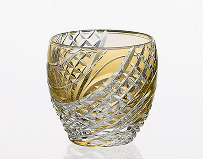 Tinted crystal glass with Edo Kiriko's traditional pattern of "Fish scales strip." Fish scales pattern in surging wave move depicts free and lively beauty like a swimming fish.